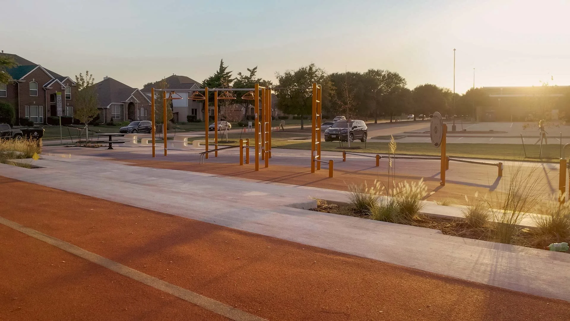 The aging facilities of Cannaday Recreation Area, which serve a middle school, elementary school, and an established single-family neighborhood, were in strong need of renovation. Frisco Parks planners wanted to revitalize the neighborhood park by creating a ‘fitness-centered’ playground- as part of a general campaign by the city to promote health-conscious living and provide more exercise and active recreation opportunities for users.